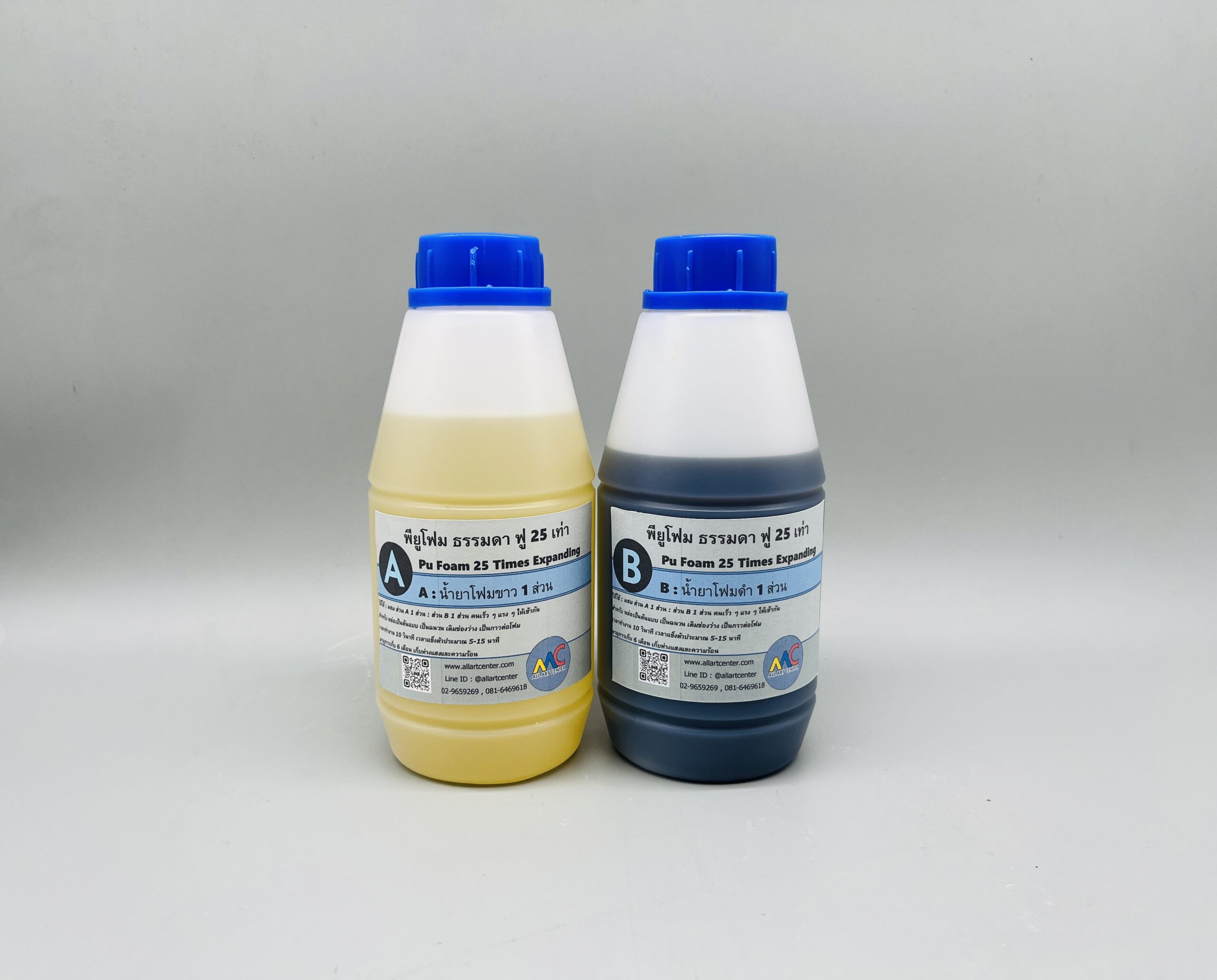 - อัตราส่วนผสม น้ำยาโฟมขาว 1 ส่วน โฟมดำ 1 ส่วน